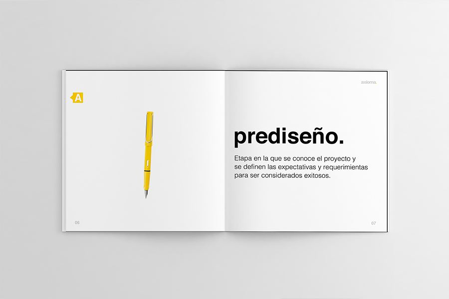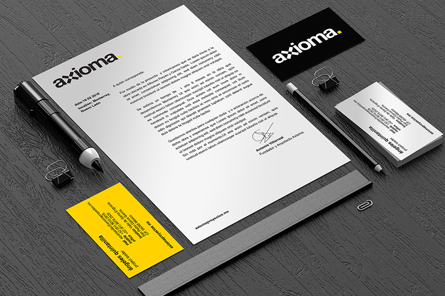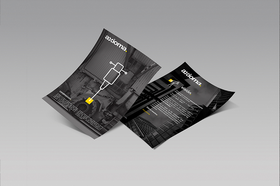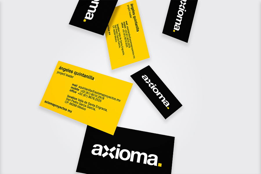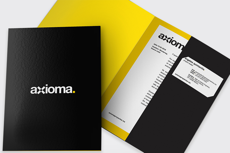 The logo represents the fusion of its 4 pillars as the “x” of Axioma. By highlighting the “period” with another color, it’s an statement that it is Axioma and that’s it, there is no other other agency. Contrasting colors and fonts were used to highlight each graphic element.
