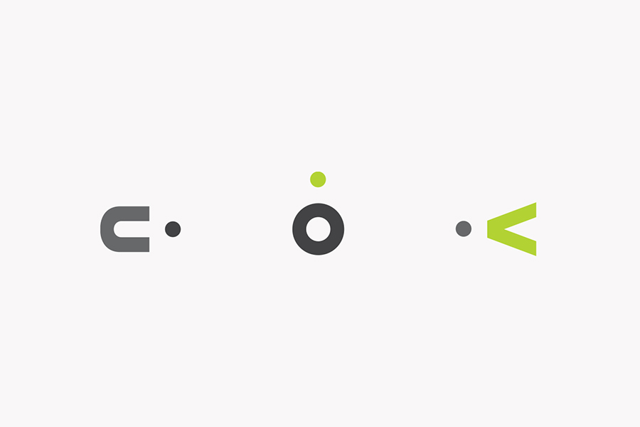 Create a modern and minimalist brand that represents a technology company, with the use of preestablished colors (Grey and green).