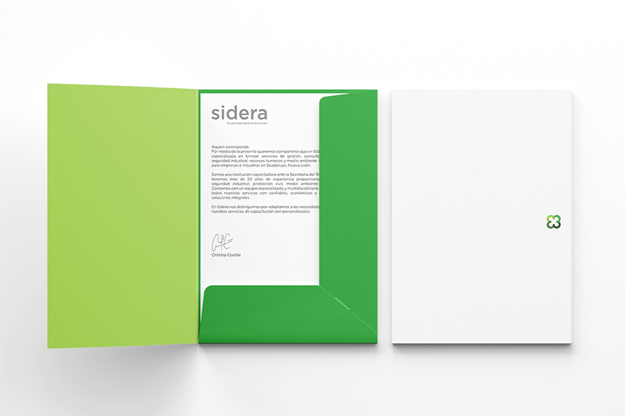 Sidera’s main services are EHS, so we seek to develop a green, easy to remember, friendly brand.